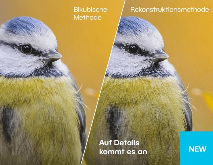 Die AI berechnet fehlende Details auch bei radikaler Vergrößerung nach und eignet sich für kleine Fotos und den einmaligen Gebrauch.