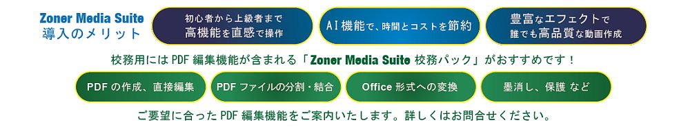 AIを活用した画像生成やAI編集、モザイク加工機能、さらにお得なPDF編集セットなど、校務でもご利用いただけます。